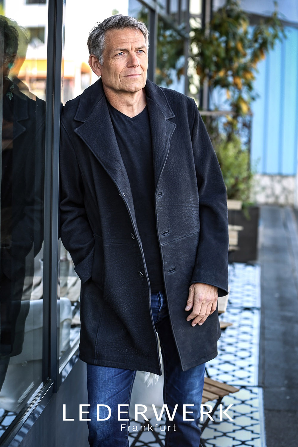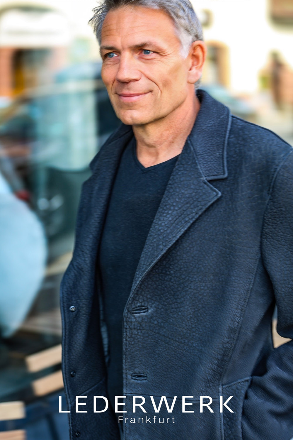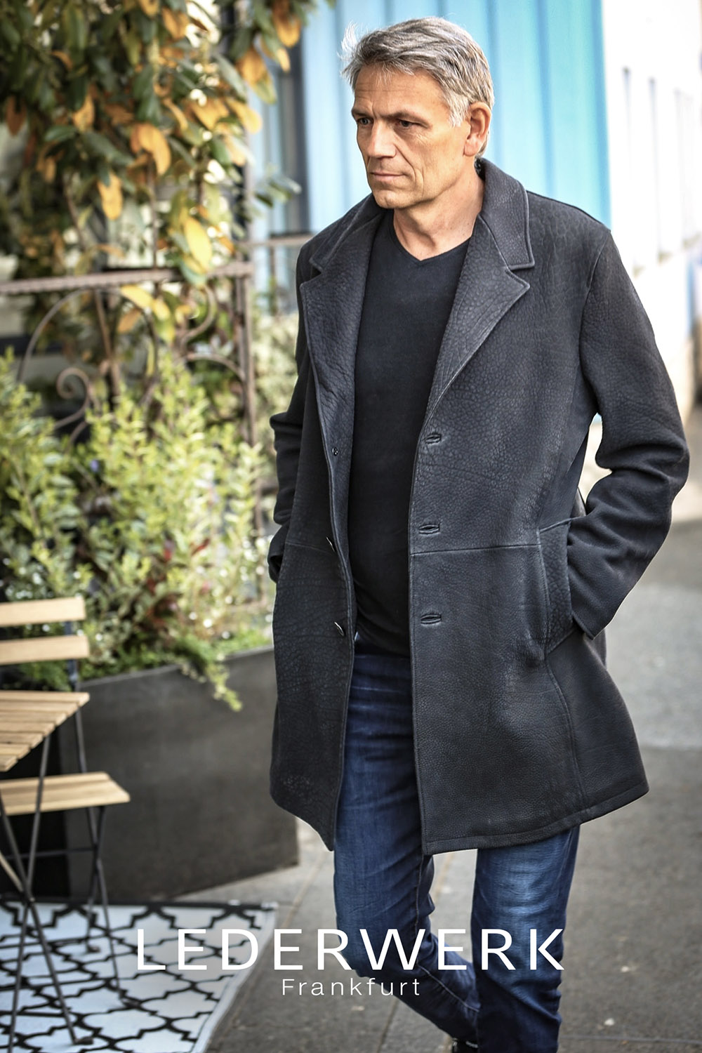 Unser außergewöhnlicher Herrenmantel aus edlem, handverarbeitetem Leder welches zu 100% in Deutschland hergestellt wurde und die allerhöchste Qualitätsstufe besitzt, da es Olivenblatt gegerbt wird, verkörpert maskuline Souveränität und moderne Lässigkeit zugleich. Durch die natürliche Prägung und das per Hand angeschliffene Leder mit sanftem Vintage-Finish erinnert an die wilde Schönheit der Natur – individuell schattiert für einen unverwechselbaren Look mit Tiefe und Charakter. Der klare, leicht taillierte Schnitt sorgt für eine markante Silhouette und unterstreicht den modernen Stilanspruch. Zwei Seitentaschen, eine dezente Knopfleiste und ein hoher Stehkragen verleihen dem Mantel Funktionalität und zeitlose Klasse. Gefertigt aus weichem Premiumleder, bietet der Mantel höchsten Tragekomfort und wird mit jedem Tragen schöner – ein echtes Statement-Piece für Männer mit Stilbewusstsein.